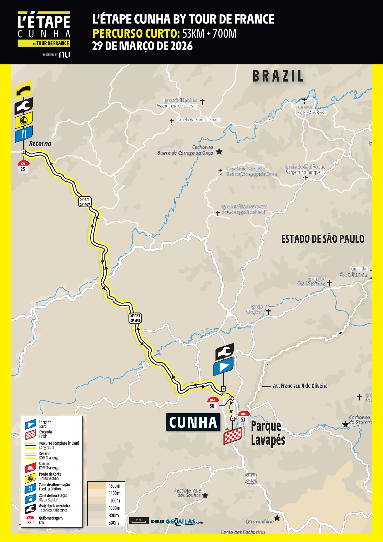 Esse será um percurso mais seguro e dinâmico, com a largada em Cunha, seguindo pela estrada de Guará-Cunha, até o trevo do Bairro Rocinha/saída para Lagoinha, onde os atletas farão o retorno rumo à chegada na conhecida subida da Igreja Matriz.